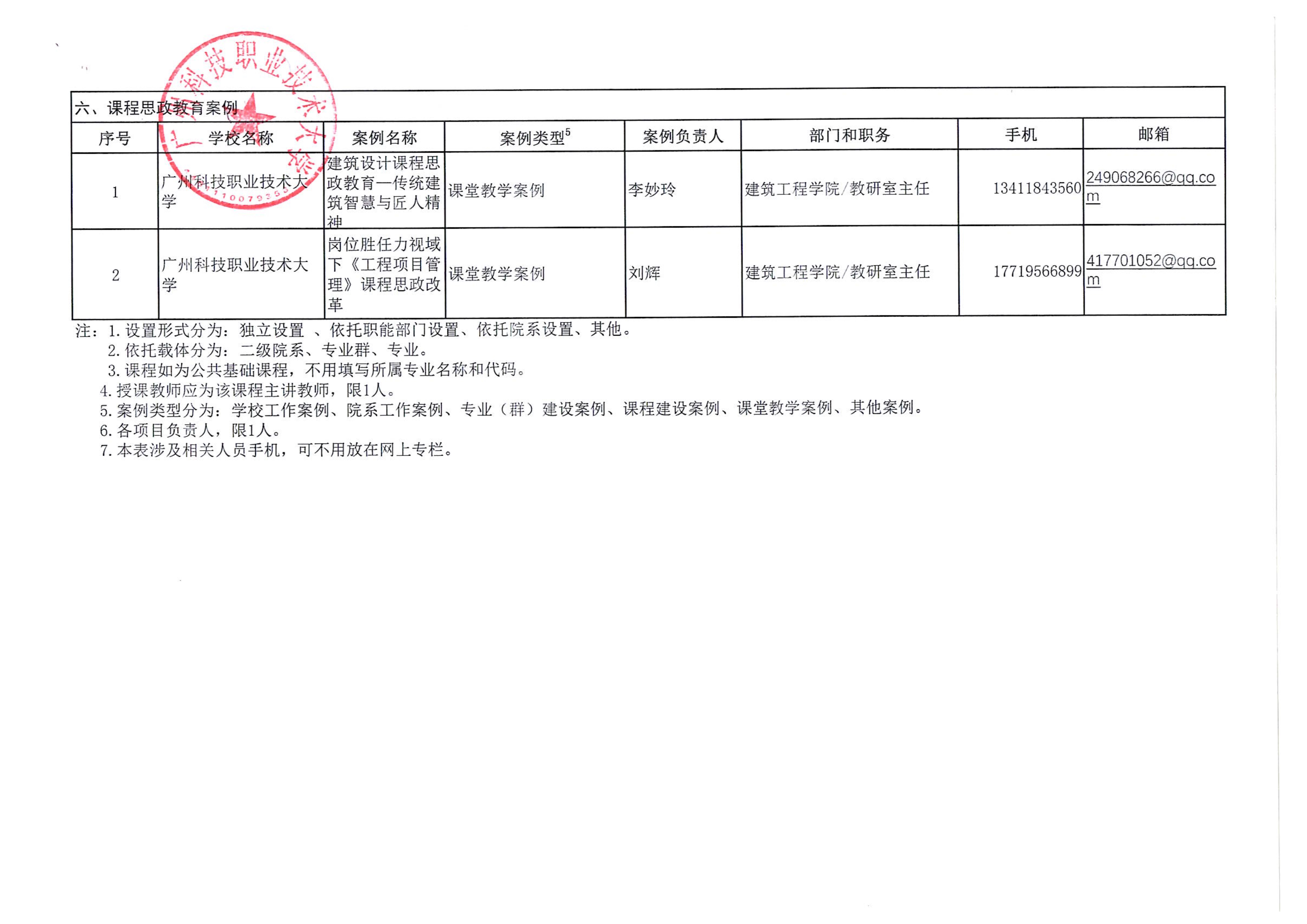 课程思政示范项目申报汇总表
