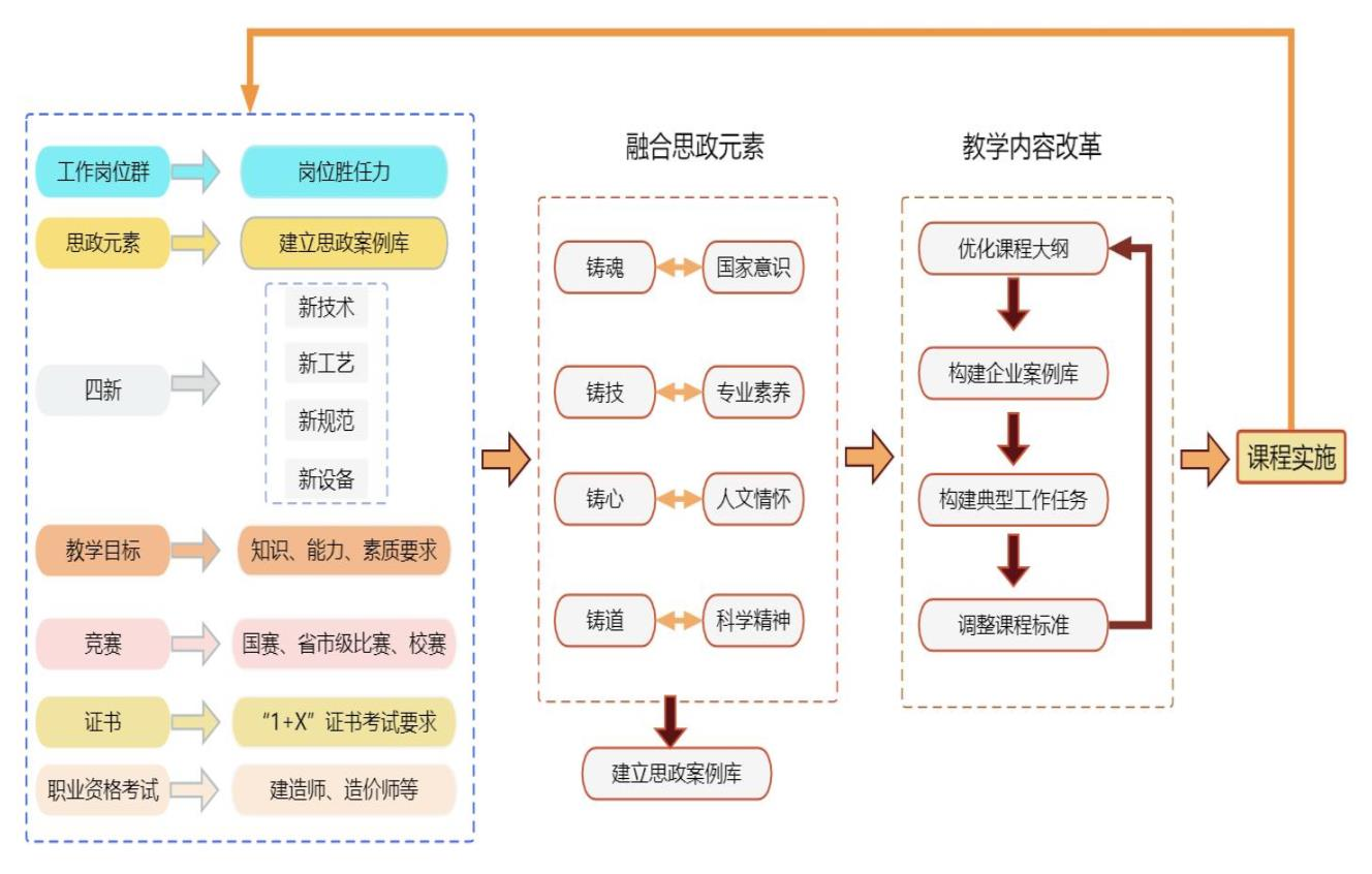 1.四维联动:多层次覆盖,全方位育人针对《建筑工程项目管理》课程的专业特点和学生培养需求,契合建筑工程行业的需求,课程内容进行了系统整合,形成了五大模块:工程项目管理概论、工程项目进度与成本管理、工程项目安全与质量控制、工程项目合同与风险管理、工程项目信息管理。构建“铸魂、铸心、铸技、铸道”四维一体的创新思政模式。通过层层递进、相辅相成的逻辑关系,全面提升学生的综合素质,将课 ...