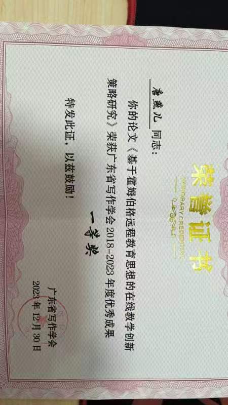广东省写作学会优秀成果一等奖(唐燕儿)