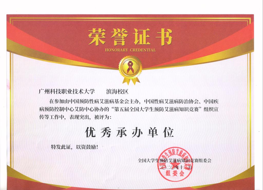 滨海校区获“第五届全国大学生预防艾滋病知识竞赛”优秀承办单位