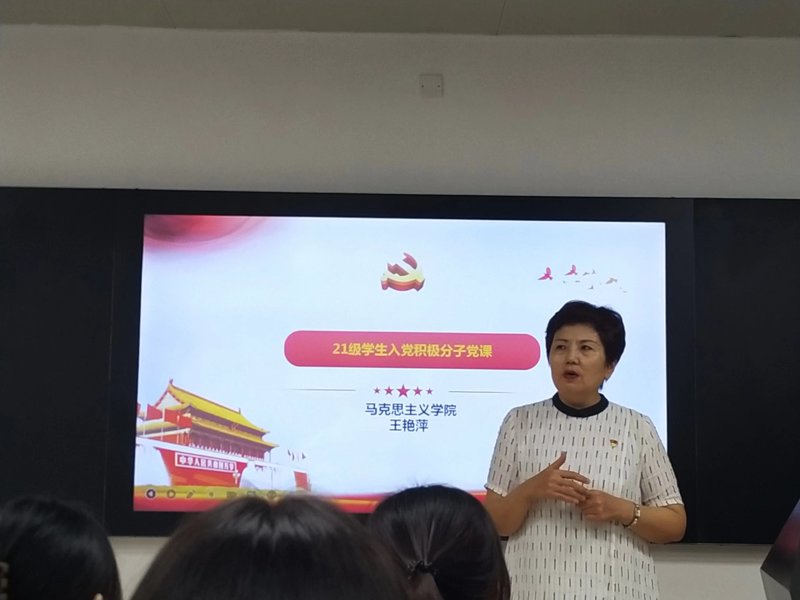 本次党课培训由学校马克思主义学院王艳萍老师主讲。围绕《深刻认识党的历史,牢记党的性质宗旨》、《坚持党的指导思想,严守党的纪律规矩 》、《明确入党标准和程序,践行党员义务和权利》、《坚持中国特色社会主义,勇担时代使命》等四个主题,王艳萍老师就中国共产党全心全意为人民服务、为中华民族伟大复兴而努力奋斗的性质宗旨,坚持马克思主义在意识形态领域的指导地位、坚持以习近平新时代中国特色社会主义思想为指引,入党程序和党员权利义务等跟广大入党积极分子做了深刻阐释,并就如何做一名合格的入党积极分子提出了具体要求。