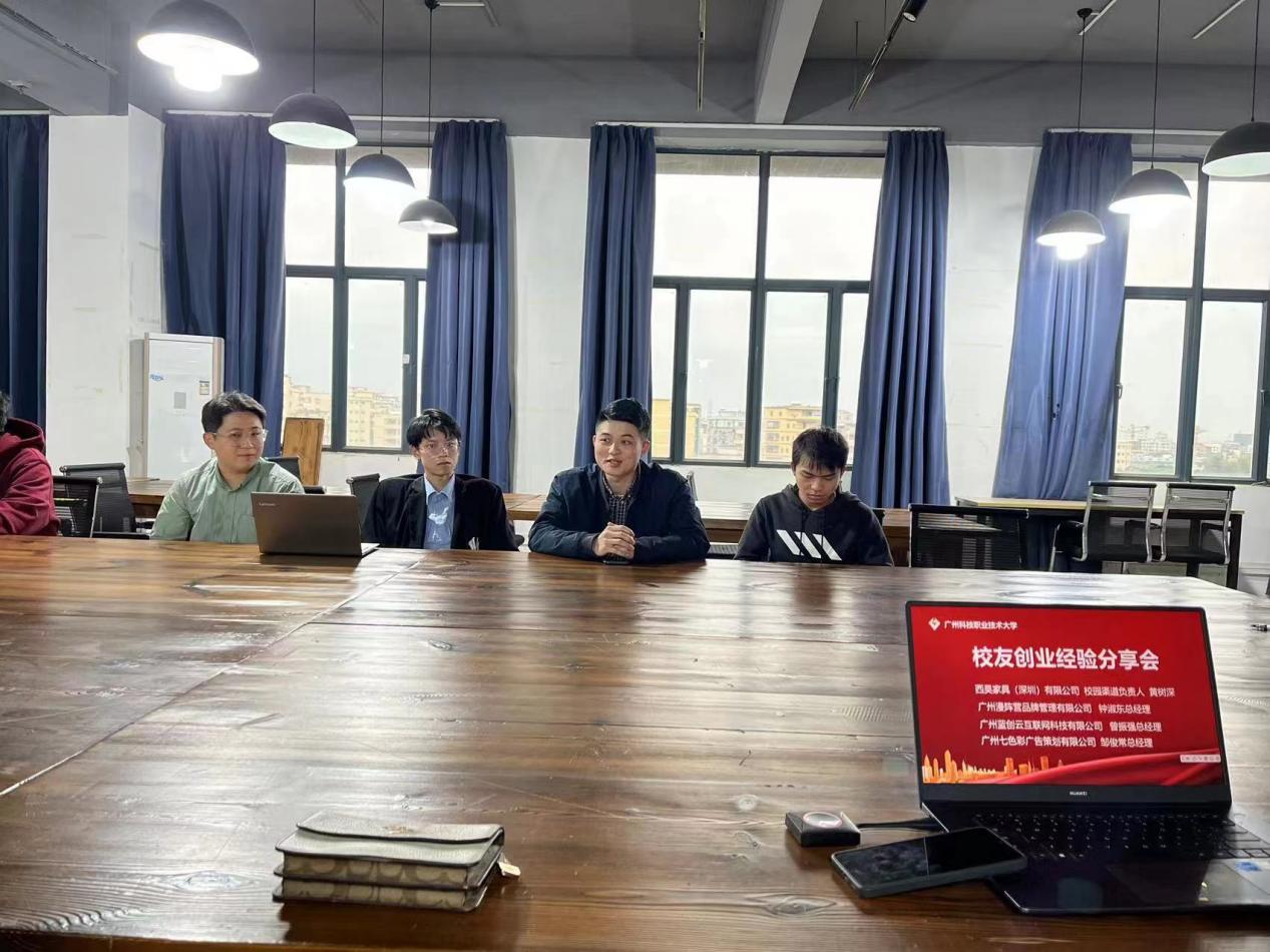 为帮助在校创业学生在创业道路上更好地成长与发展,创新创业学院于2024年3月14日邀请了校外创业校友广州漫阵营品牌管理有限公司执行董事、总经理钟淑东,广州蓝创云互联网科技有限公司执行董事、总经理曾振强,西昊家具(深圳)有限公司校园渠道负责人黄树深,广州金麟传媒有限公司副总经理蔡旺达,以及校内创业校友广州市七色彩广告策划有限公司负责人邹俊常、广州市铖芯微科技有限公司负责人任秀鹏、广州市御鲸商业有限公司负责人王龙、广州众鑫科技文化传媒有限公司负责人吴柏伦等创业校友给在读创业学生分享创业经验。校企合作与实习就业处处长兼创新创业学院院长姚圣梅与创新创业学院叶作龙老师出席交流会。