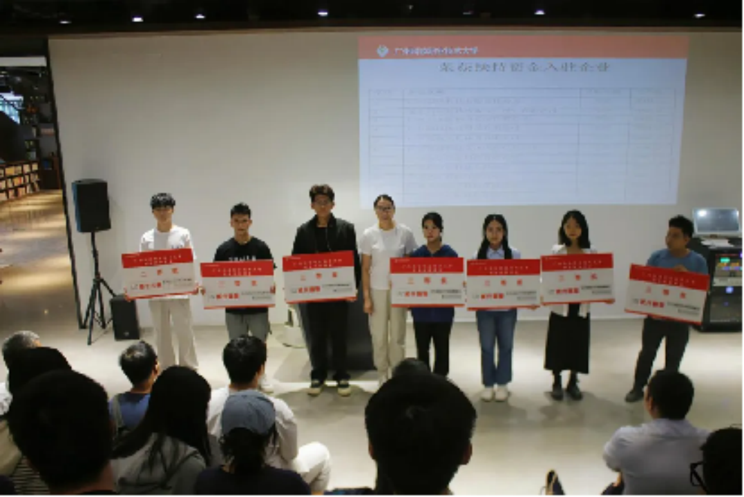 在广科大创客梦工场这片充满活力与希望的沃土里,有这样一群勇敢追梦的年轻人。他们以创新为翼,以创业为帆,在挑战与机遇中砥砺前行;他们用年轻的头脑孕育出一个个新颖的创意,让梦想在实践中绽放光芒;他们敢于突破传统,勇于开拓未知,在创新创业的道路上留下了坚实的足迹。学校给予这些优秀的年轻人颁发创新创业扶持资金,不仅是一份物质的支持,更是对他们勇气与智慧的高度认可。