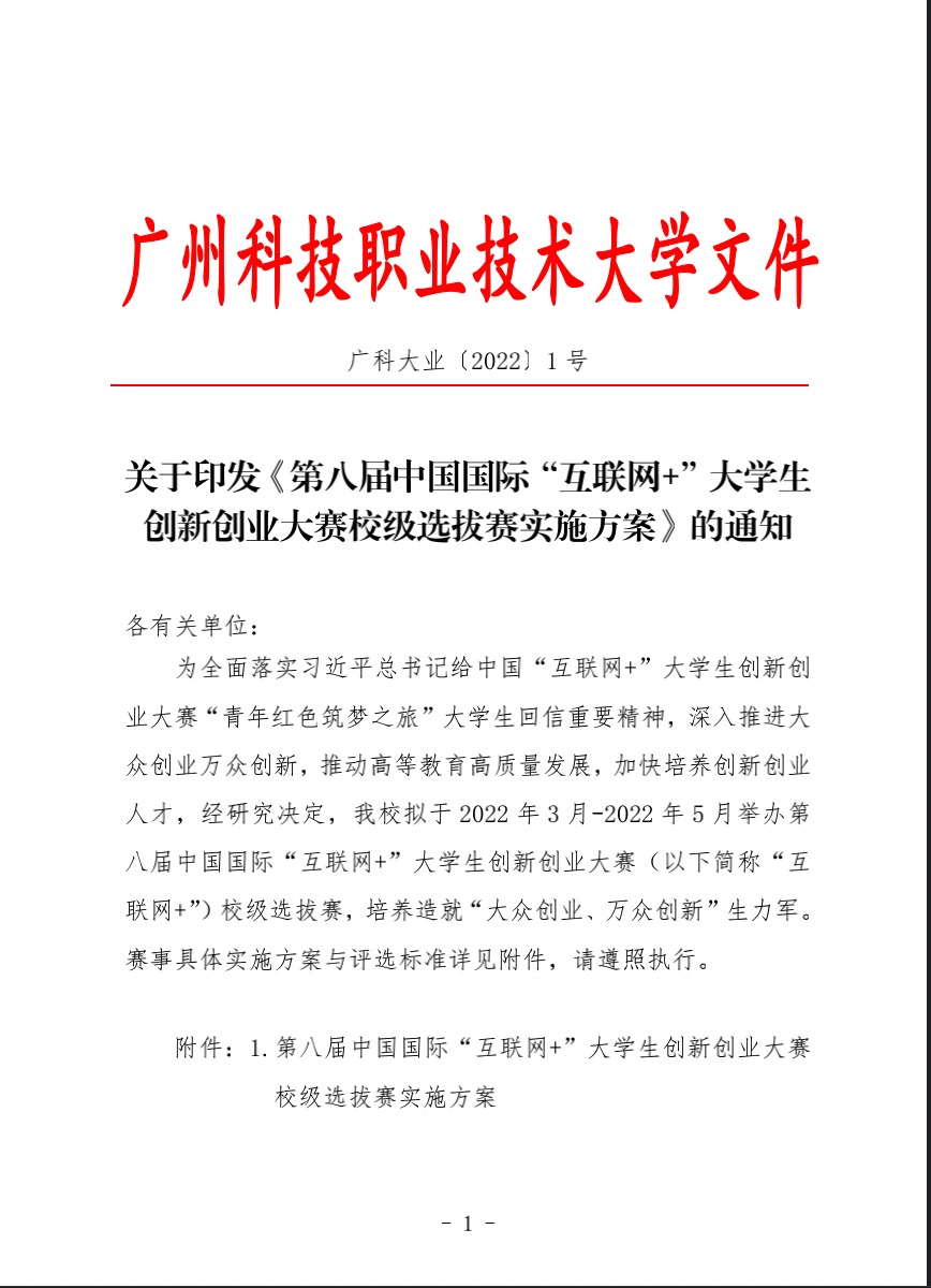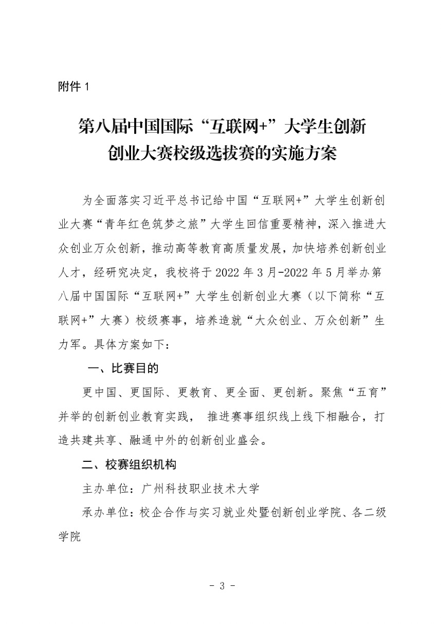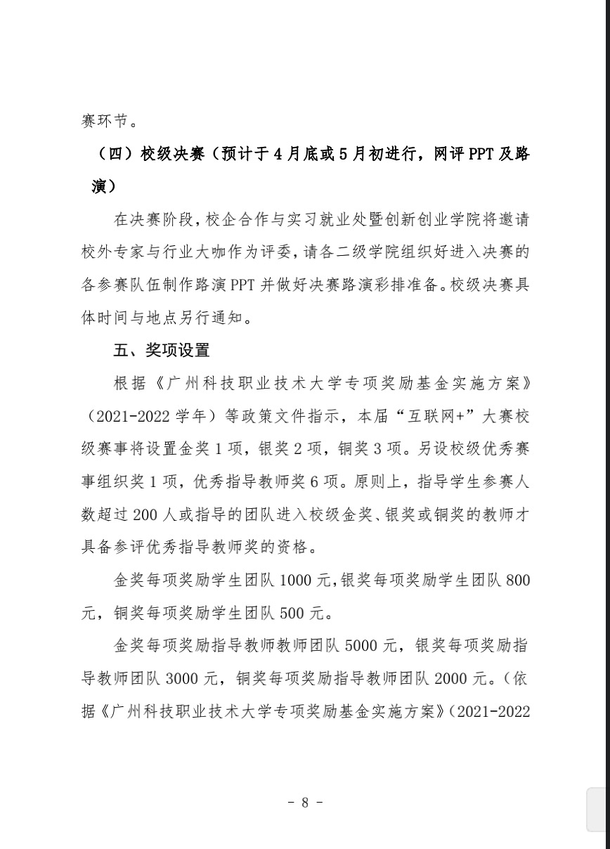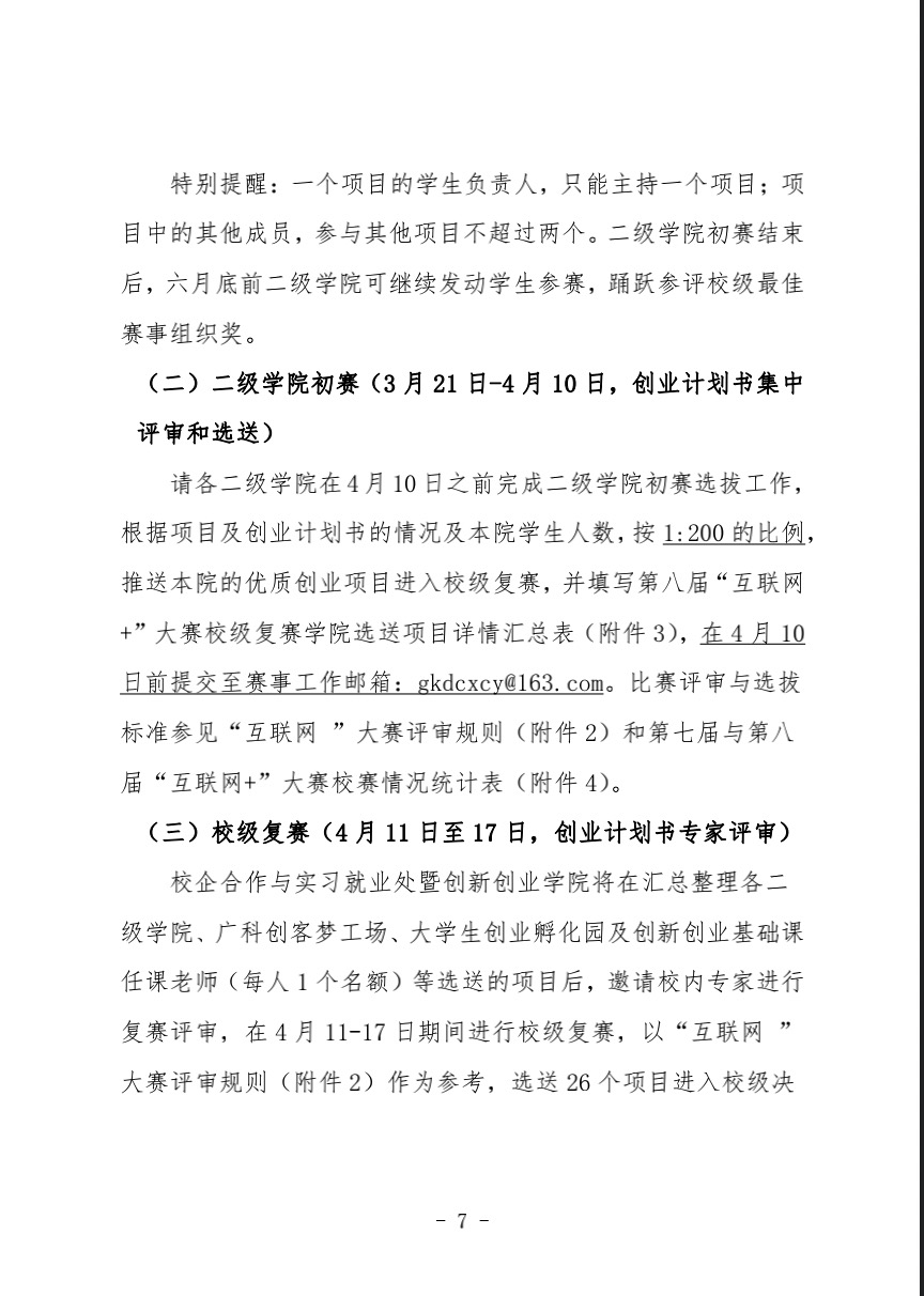 第八届中国国际“互联网+”大学生创新创业大赛校级选拔赛实施方案