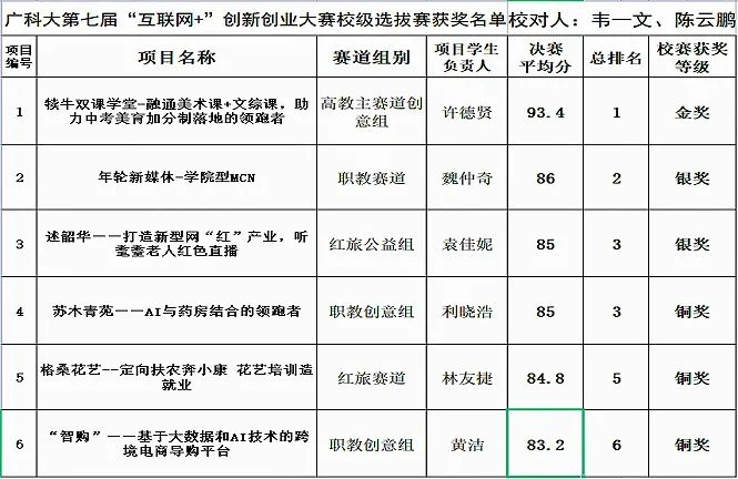 省决赛环节中,我校参赛项目《新媒体新生代—学院型MCN》团队和“格桑花艺工作室”项目团队克服困难,积极备赛,为我校勇夺第七届“互联网+”广东省省赛银奖和铜奖!成功突破我校参与历届“互联网+”大赛以来的最好成绩,创造了新的里程碑!