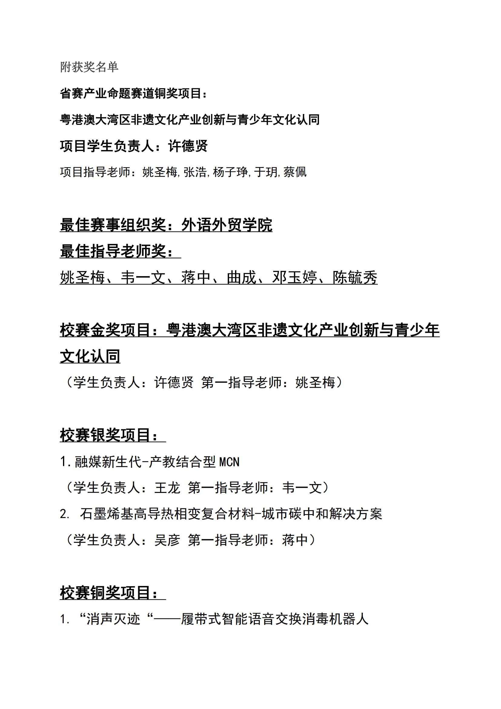 广科大2023年第九届中国国际“互联网+”大学生创新创业大赛表彰决定