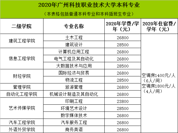 2020年华亿在线招生本科专业学费及住宿费公示表