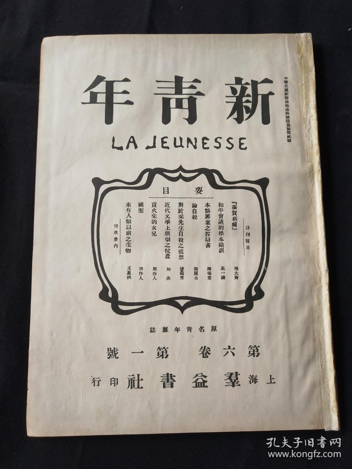 陈独秀1919年在《新青年》第六卷第一号发表《本志罪案之答辩书》
