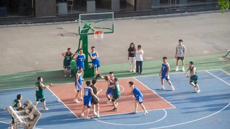 交流会结束后,校友们移步至学校篮球场,与老师们共同参与了一场别开生面的友谊赛