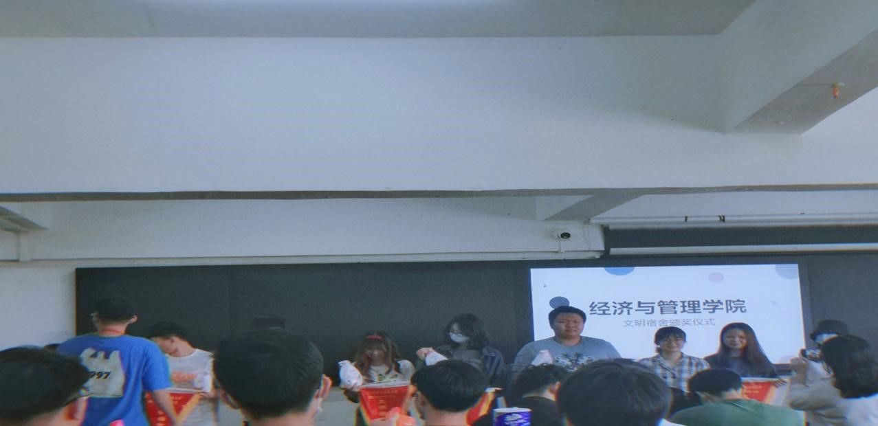 2021年4月21日下午14点30分,经济与管理学院在3栋楼的3301进行了“文明宿舍”的颁奖仪式,对遵守学校规章制度、宿舍环境良好的宿舍予以表扬,颁发文明宿舍锦旗和一些日用礼品以资鼓励。