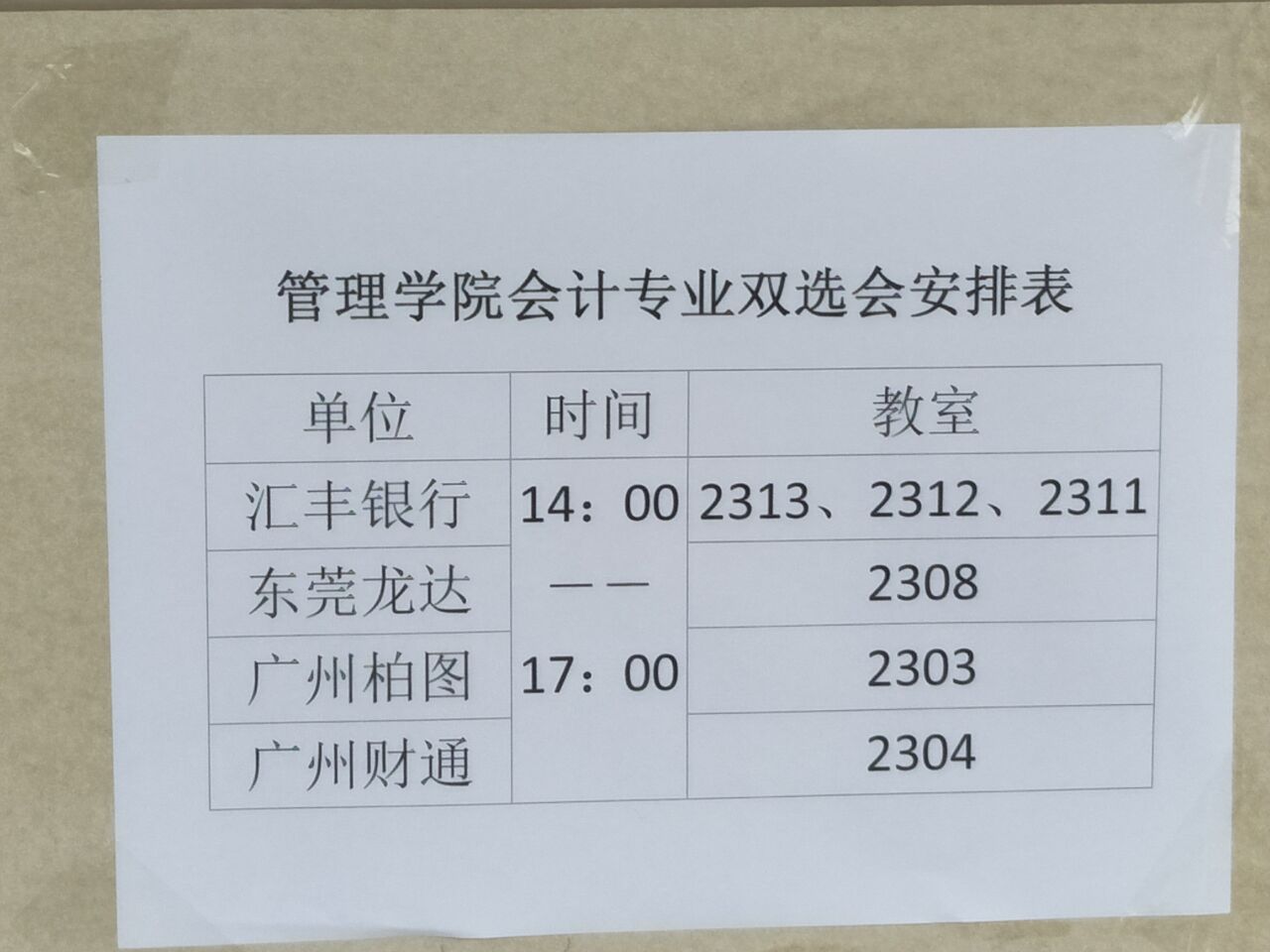 管理学院会计专业学生和4个企业举行了双选会,整个下午弥漫了紧张和兴奋的气息,对同学们来说是一种机遇,同时更是一项巨大的挑战。同学们反映到4个企业都是大家心目中的优秀企业,如果能够进去里面实习,对于他们是一种莫大荣誉。