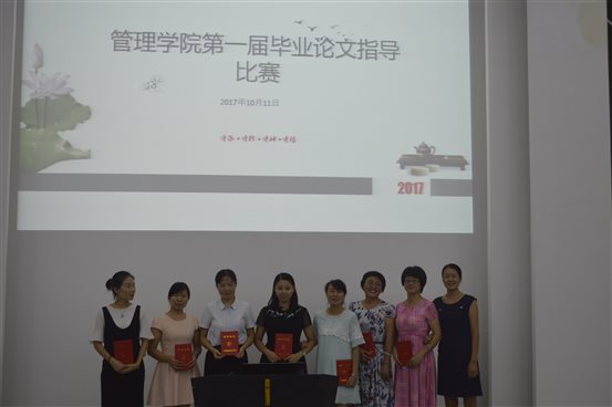 本次比赛在督导办李教授的充分肯定和颁奖后圆满结束。参赛的教师对毕业论文指导工作不但都在管理学院统一要求的论文进度和统一的论文格式基础上开展,而且发挥了自我的主动性,在指导毕业论文过程中,对细节问题积极想办法,彰显了我院教师爱生敬业的宝贵精神。比赛达到了沟通交流,展现亮点、反馈问题的目的。本次比赛有利于提升2016级毕业论文指导工作,为我院毕业论文试点工作做了阶段性总结。