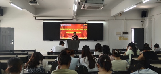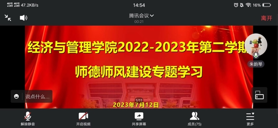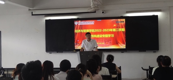 为深入学习贯彻党的二十大精神,贯彻落实习近平总书记关于教育的重要论述,根据上级部门有关要求以及我校师德师风建设工作安排,经济与管理学院于2023年7月12日在2506开展“2022-2023年第二学期师德师风建设专题学习活动”。活动由经管学院党总支书记曲成主持,采取线上+线下结合的方式,经管学院全体教师参加并考勤。