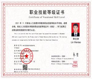 近日,我校林文涛等19名人力资源管理专业学生欣喜的拿到了“人力资源共享服务职业技能等级证书(初级)”证书。此次“1+X”证书试点工作中,我校喜获2021年度“1+X”人力资源共享服务职业技能等级证书制度试点工作“优秀组织贡献奖”。