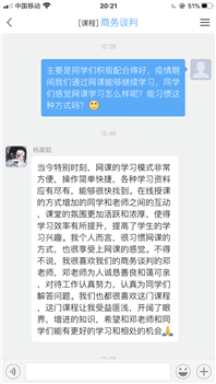 课后的邓老师依然是尽心尽责跟进每一个学生的学习进度,布置课后习题,让学生巩固知识,并且反思课堂中是否存在不足,积极和学生们讨论,接受学生的建议。为了能让学生们都收到作业任务的通知,邓老师多次发通知提醒同学,并且打电话了解情况。