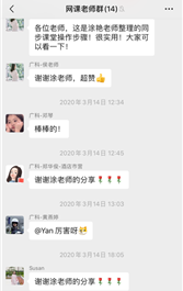原来涂老师在寒假期间,就已将教材熟读多遍,并做好相应的教学课件,后续结合学生的兴趣和时事热点不断地更新教学内容。课前预告知识点,发布话题讨论,制造悬念以激发同学们的求知欲。课前复习上节课的内容,然后提问,奖赏抢答最快最完整的同学一朵小红花,以激发大家学习热情。课后布置作业精而简,要求学生心得笔记每周打卡一次,培养学生好学深思的习惯。