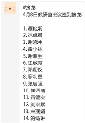 会议进行了近一个小时,最后谢老师指出,教研室工作的开展需要各位老师的支持,对每位老师以后参加会议的考勤问题也提出了要求。