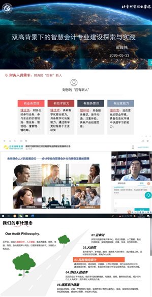 管理学院学院领导希望会计专业能抢抓职业教育整体质量提升和结构提升的先机,能为新经济和新产业培养提供足够多足够优秀的技术人才。会计教研室主任刘群老师组织教师们参加了此次研讨会,由于仍处疫情期间,教师们通过在线观看的方式进行学习。