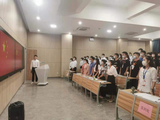 2021年5月28日下午在八栋教学楼8305教室召开了经济与管理学院国贸专业群师生联合党支部2021年上半年发展对象转预备党员通表大会。在主持人上台强调了会议的纪律及要求,随后在庄严的国歌声中,全体人员起立奏唱国歌,大会正式拉开帷幕。