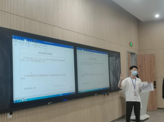 图为国贸党务小组组长黄小迪为大家进行细节补充