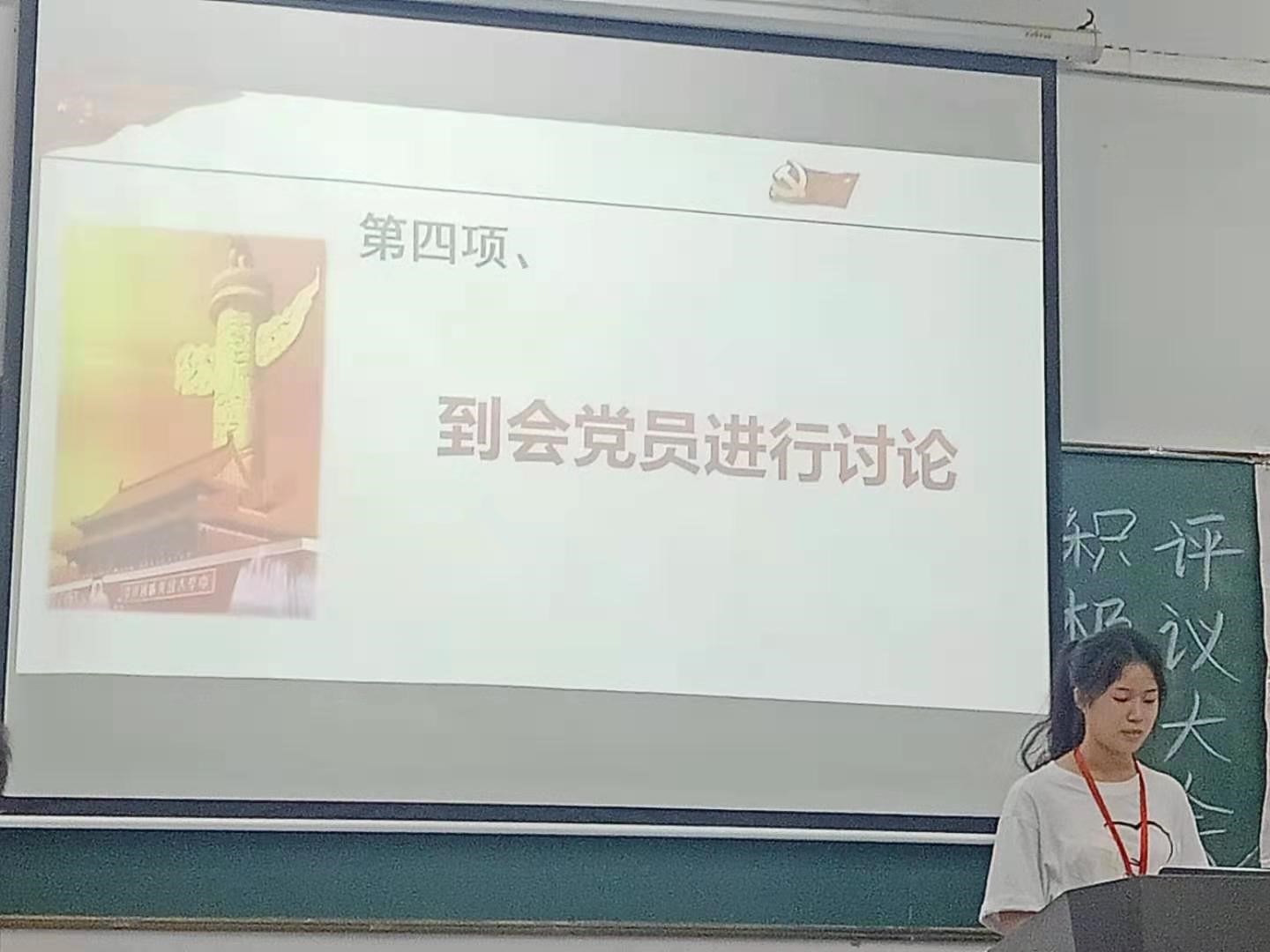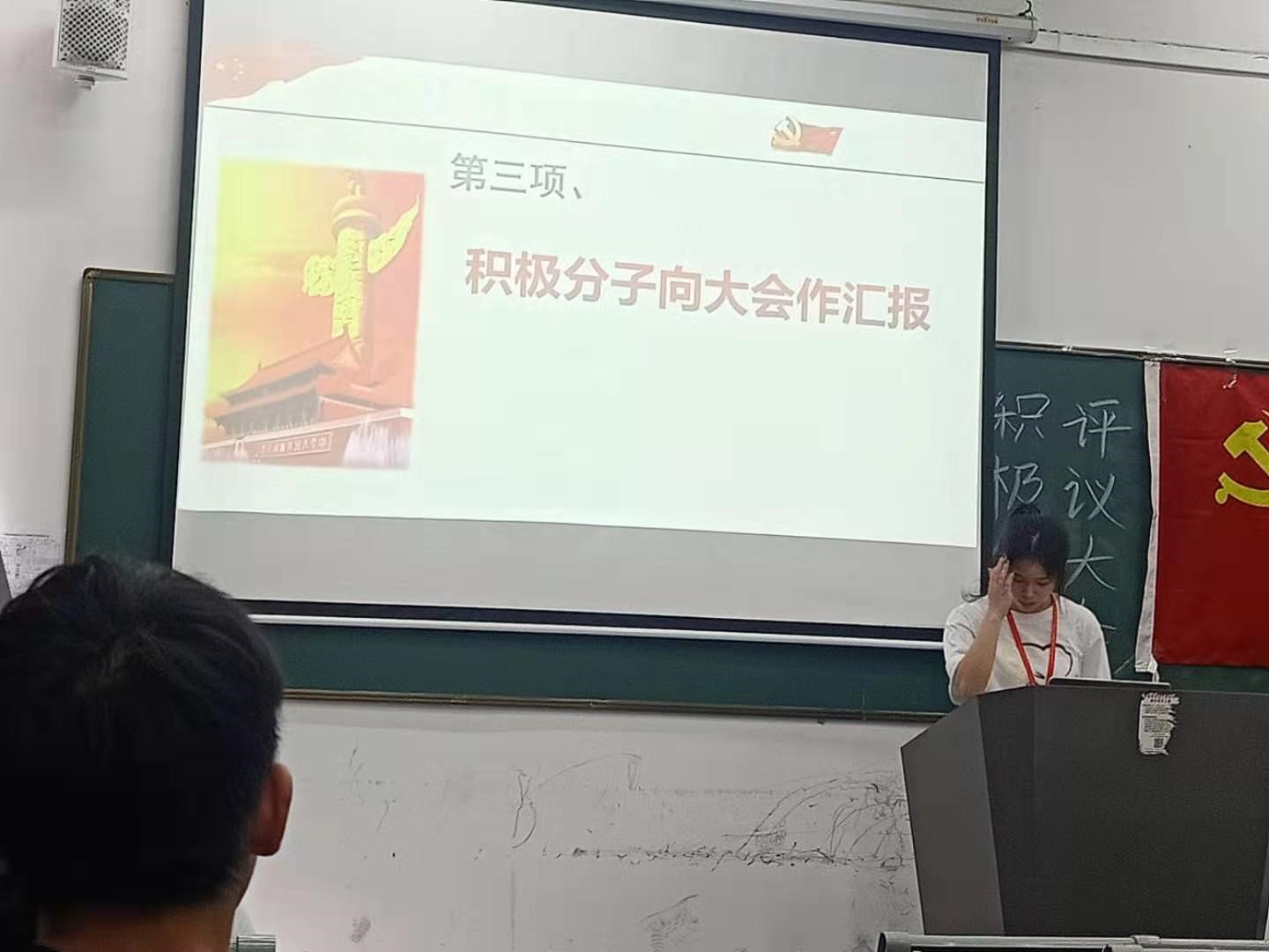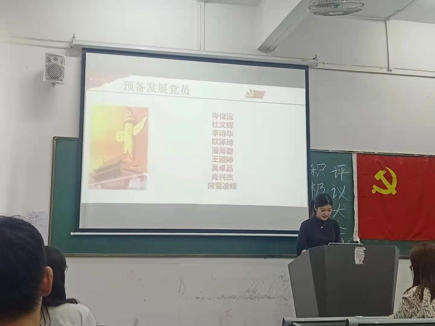 大会首先由党务小组陈晓冰组长发表讲话。介绍了会议议程出席的领导嘉宾。然后全体成员起立,激昂的奏唱起《国歌》。紧接着,九名预备发展对象依次上台对大会作汇报,讲述了自己的入党动机、入党历程和对党的理解和认识同时结合自己的实际情况表达了自己加入中国共产党的决心和强烈愿望。在预备发展对象讲述完毕之后,作为入党介绍人的正式党员,进行到会党员讨论。