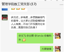 谢书记也对本次会议进行了总结发言。谢书记说,刚才各位老师发言很热烈,提的意见也很好。总结主要有四方面:一是大家作为教师要准备好网络教学工作,确保教学质量,提升教学质量。二是关心学生、特别是在外实习的学生,做好学生的思想引导。三是配合政府做好抗疫情工作,在抗疫中发挥自己的能量,比如积极宣传防疫知识和参加社区抗疫工作。四是向奋战在抗疫一线的人员致敬、学习,特别是医护工作者,为抗疫情出钱出力的所有人都感动着我们,激励我们继续不忘初心、砥砺前行。