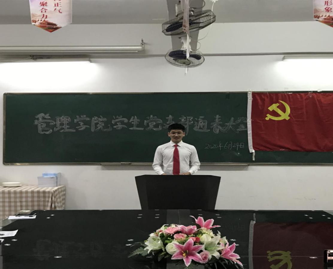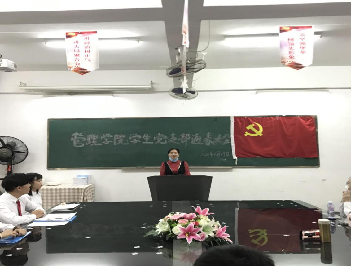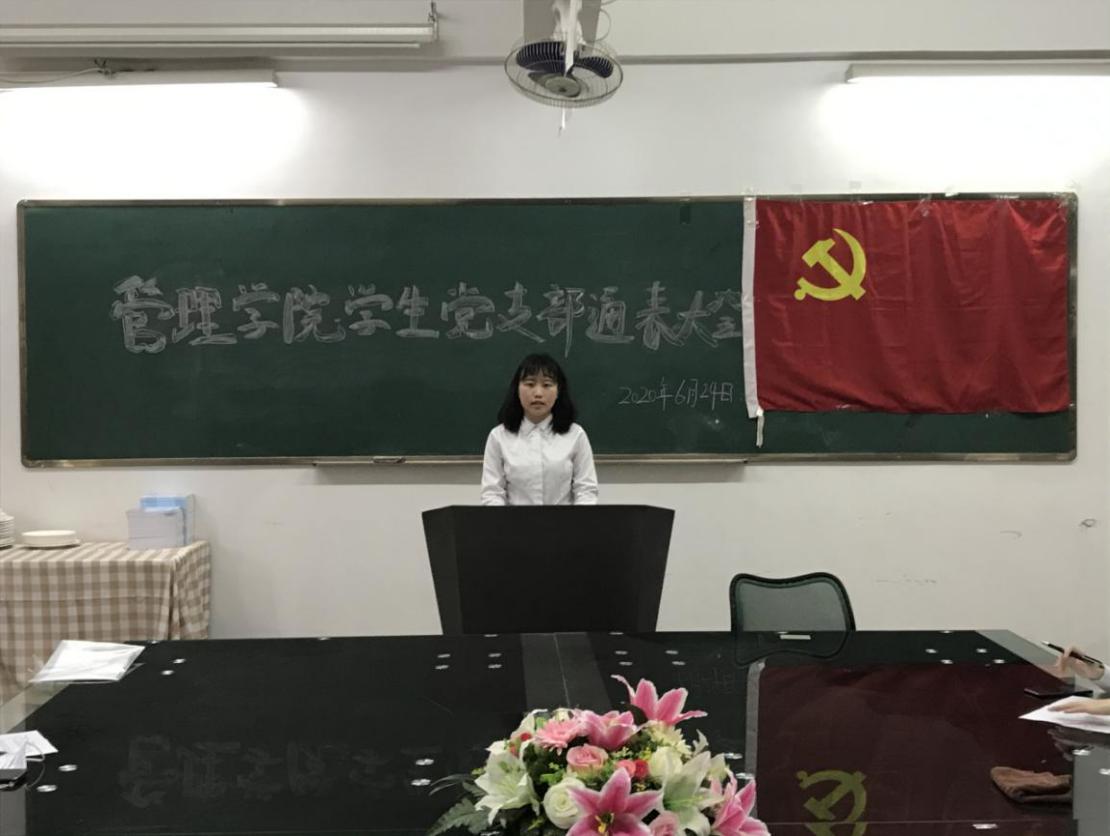为加强党员队伍建设,为党输送优秀人才,补充高素质的后备力量,华亿在线管理学院学生党支部于2020年6月24日上午在2315B党员发展活动室召开管理学院学生党支部通表大会。此次会议由黄冉书记主持。参加本次会议的有管理学院学生党支部书记黄冉,支部党员曲成、张晓然、张鹏、黄正和17级预备党员、18级春季发展对象以及党务小组全体成员。