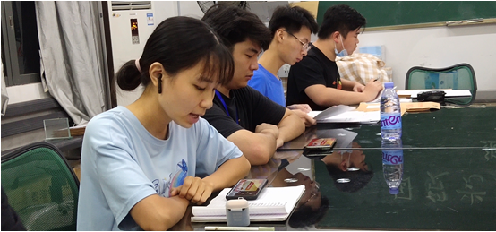 图为学生代表徐泽如同志(左一)分享学习心得
