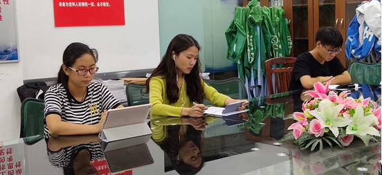 图为国贸党支部书记孙秀同志(左二)做学期“学党史”工作报告