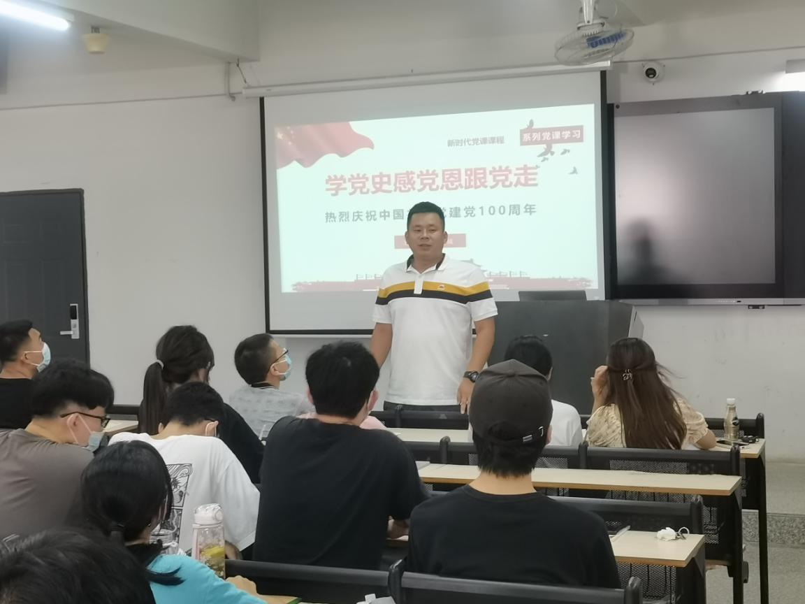 为了让预备党员和入党积极分子更进一步了解党史、学习党史、铭记党史。2021年9月24日下午14点在2507教室召开了国贸专业群师生联合党支部新学期“思政课第一课”。本次授课由经管学院党总支曲成副书记主讲,以“思政课第一课”为主题,主讲学党史、感党恩、跟党走,庆祝中国共产党建党100周年。