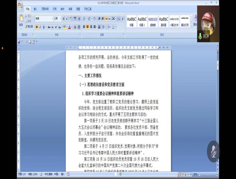 刘静书记对2022年各支部工作进行总体评价,并强调发展党员的材料必须严格按照要求进行,不能马虎。曲成副书记对2022年发展党员中存在的“志愿者服务不积极”等问题进行总结,并要求党员教师发挥先锋模范作用,做好志愿者服务工作。