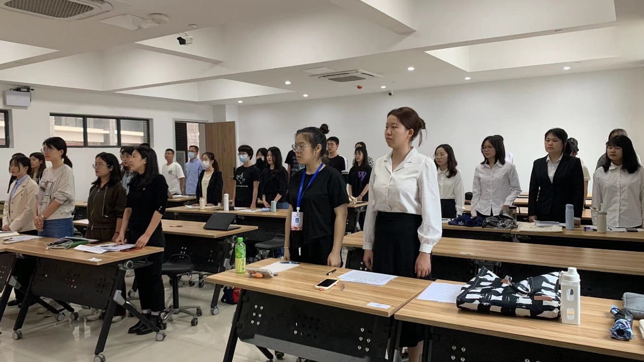 首先由刘佳敏同志强调了会议的纪律及要求,随后在庄严的国歌声中,大会正式拉开帷幕。本次参会人员有:经管学院国贸专业群师生联合党支部组织委员张雯婧同志、经管学院国贸专业群师生联合党支部宣传委员徐承凤同志、全体师生党员以及国贸党务小组成员。