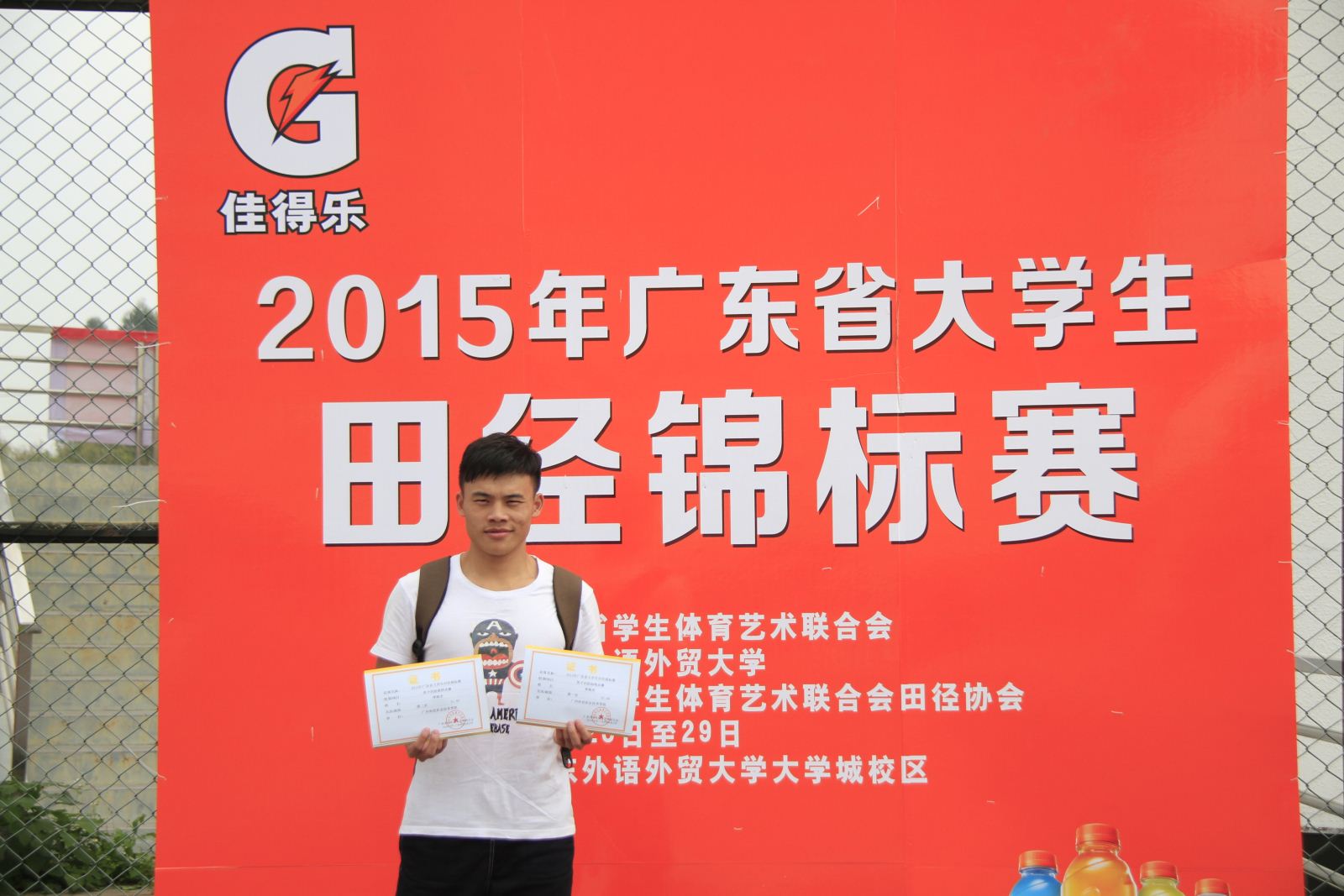 (广科新闻网讯)2015年11月26日-29日,由广东省学生体育艺术联合会主办2015年广东省大学生田径锦标赛在广东外语外贸大学大学城校区举行。 我院代表队在体育俱乐部主任陈晓虎、体育俱乐部老师刘利等人的带领下,参加了多个项目,我院学子在标枪,铁饼等多个单项比赛中取得优秀成绩。