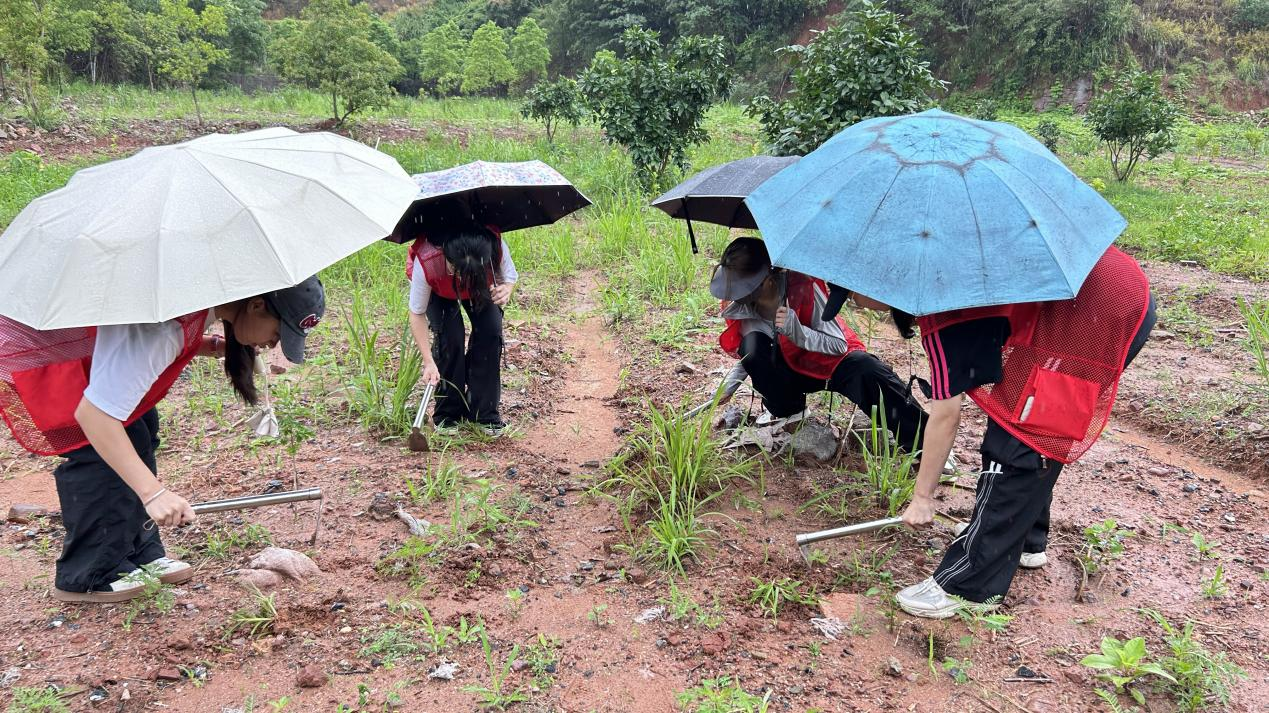 2025年5月17日,尽管韶关上空细雨纷纷,但健康学院2024级中药学1班的同学们在张伟丽、严志云、王月、刘可欣四位老师的带领下,热情不减,在韶关中草药基地开展了植树的实训活动。同学们在雨中坚守,圆满完成实训任务,展现出了坚韧不拔的学习精神。