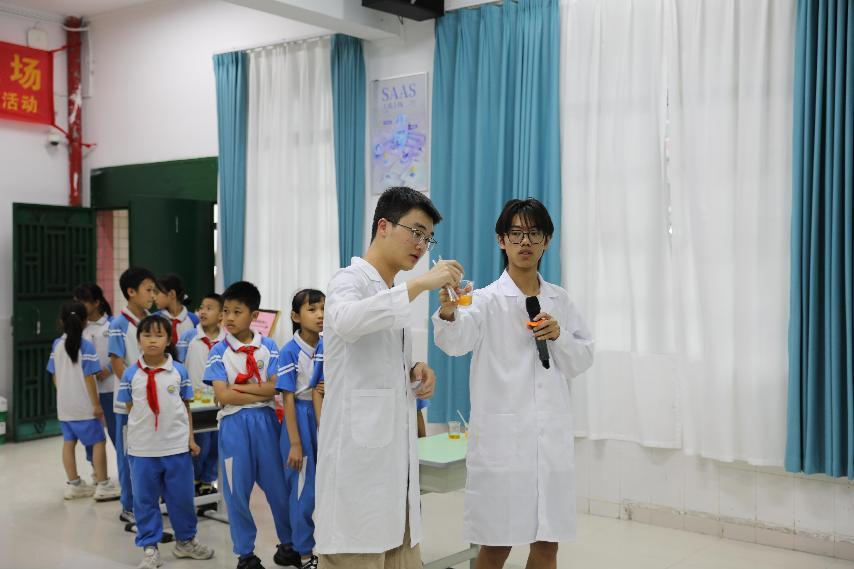 2025年5月23日,华亿在线师生团队赴广州白云区新和学校开展科研宣讲,刘国红博士以“药学社会服务——守护健康的隐形力量”为主题开启分享。她结合华亿在线健康学院“校园 +社区”的服务经验,用“过期药品像‘过期的安全卫士’”这样生动的比喻,向孩子们解释药学专业如何通过用药指导、健康宣教守护日常生活,并自然过渡到“身边的药用植物”——五倍子,为后续科普实验埋下伏笔。