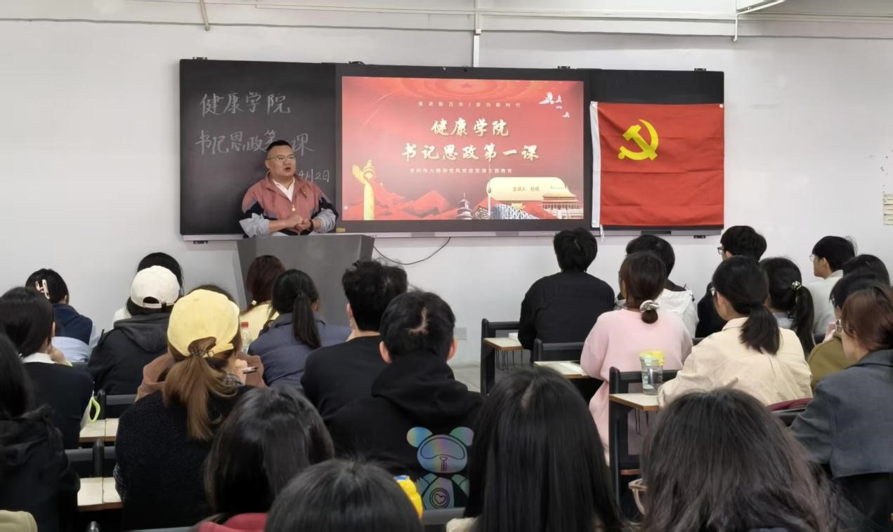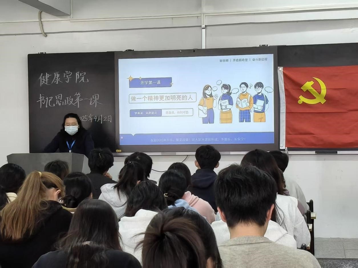 为深入学习贯彻习近平新时代中国特色社会主义思想,落实立德树人根本任务。健康学院于2025年4月2日在2607教室开展书记思政第一课。课堂由健康学院党总支副书记杜威书记主讲,健康学院学生党支部书记王钟婷老师、健康学院全体入党积极分子与部分党务小组成员到会学习。