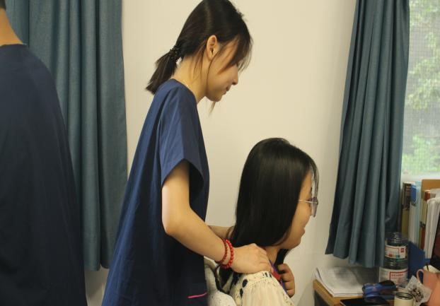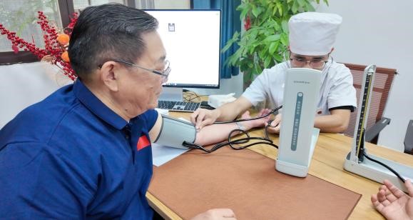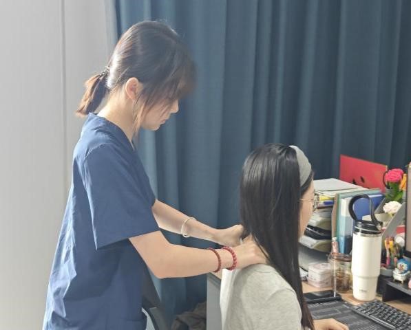 师生党员携带血压仪、血糖仪以及康复牵引等专业设备,为教职工进行免费健康检测,细致记录血压、血糖等指标,累计服务超200人次。党员教师针对教职工常见的亚健康问题,提供“一人一策”健康建议,涵盖饮食调理、运动规划、作息优化等领域,累计给出建议100余条。围绕颈椎病、腰椎病等办公常见疾病,党员教师通过现场讲解、推拿按摩、动作示范等形式,普及预防知识与康复技巧,带领教职工练习肩颈舒缓操、腰椎拉伸等实用动作,切实提升健康防护意识。