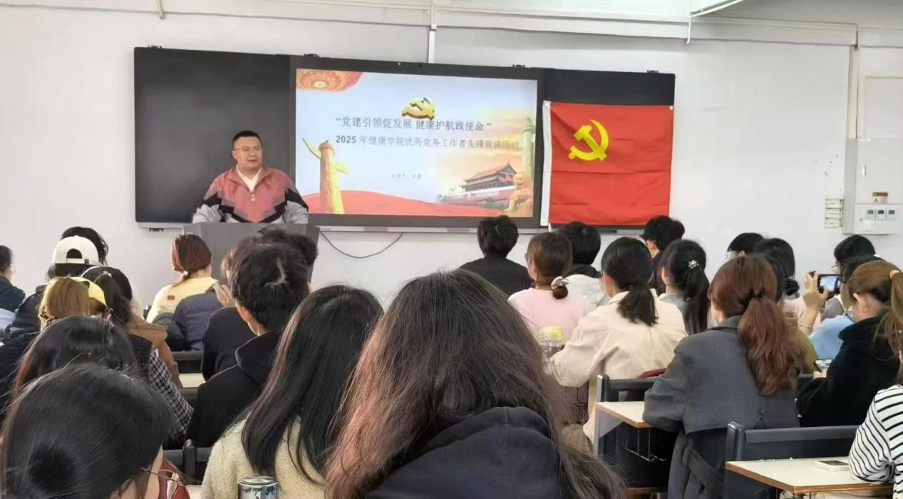 2025年5月20日,健康学院党总支在2栋教学楼2607举办先进党员经验分享会,党总支全体党员及2025年上半年86名入党积极分子参会。党总支副书记杜威分享经验,为入党积极分子指明方向,活动成效显著。