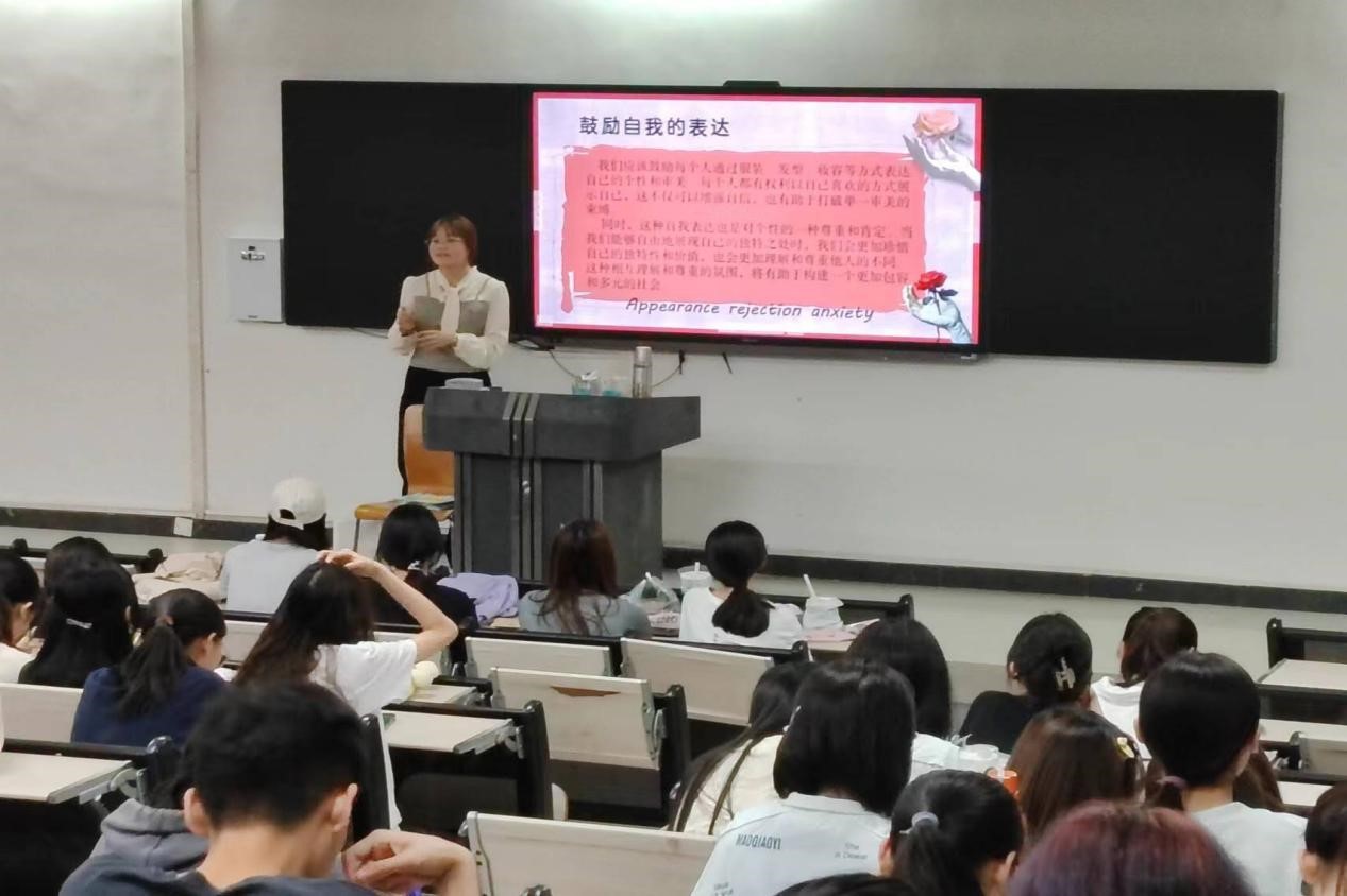 为了让同学们拒绝容貌焦虑,健康团学于2025年4月14日在1312教室举办了主题为《你可以是不为任何人开的花——拒绝容貌焦虑》的大学生讲坛,本次讲坛由李苗苗老师指导,24护理本科2班黄雨情同学主讲,总计110名学生参与其中。