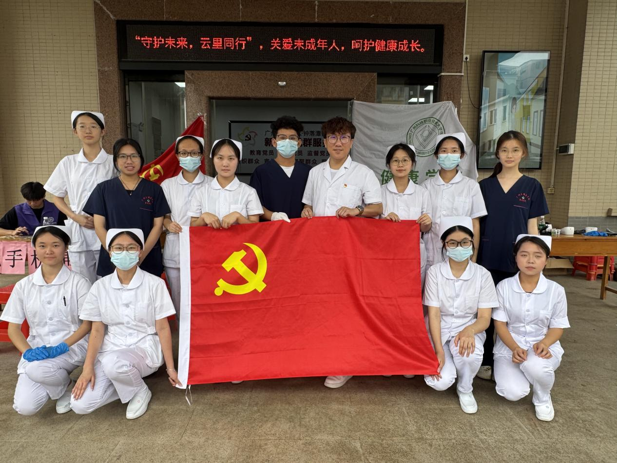 2025年6月18日,上午9时,健康学院刘琼玲院长带领基础医学教研室主任葛华老师、护理教研室副主任罗素珍老师、康复治疗教研室周星宇老师及14名护理、康复治疗专业入党积极分子学生共18人赴钟落潭镇新村村开展“专业赋能,社区同行”送健康服务。