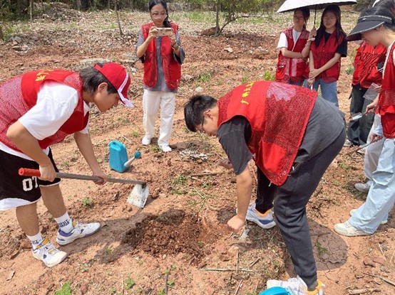 2025年4月19日,健康学院2024级中草药学4班部分学生在张伟丽、严志云两位专业课教师及实训员杨帆的带领下,赴韶关中草药基地开展实践教学活动。本次实训分为两大模块:追踪前期种植的柚子树、佛手生长数据和艾草、决明子养护,以及完成紫苏、罗勒等药食同源草本的标准化种植