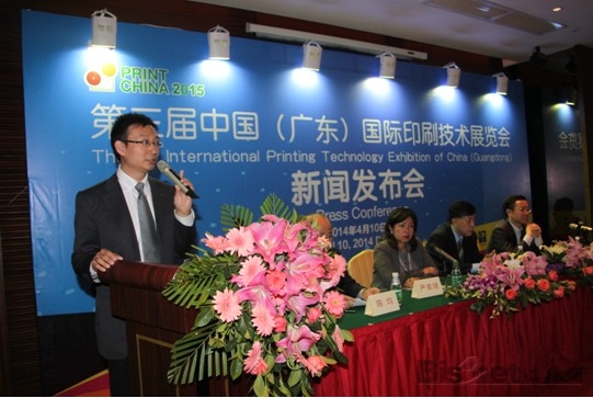 由中国印刷及设备器材工业协会,广东省印刷复制业协会,中国国际展览中心集团公司联合主办的“第三届中国(广东)国际印刷技术展览会”(以下简称:第三届广印展)将于2015年4月7日—12日在中国东莞——广东现代国际展览中心举行。为了向业界通报展会筹备工作进展情况,展会主办机构于2014年4月10日下午,在广东省东莞市华庭花园酒店隆重举行“第三届广印展新闻发布会”。