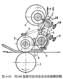 印刷机构:使印刷部件的纸张通过滚筒间的压力获得从印版滚筒、橡皮滚筒上转移过来的印迹。