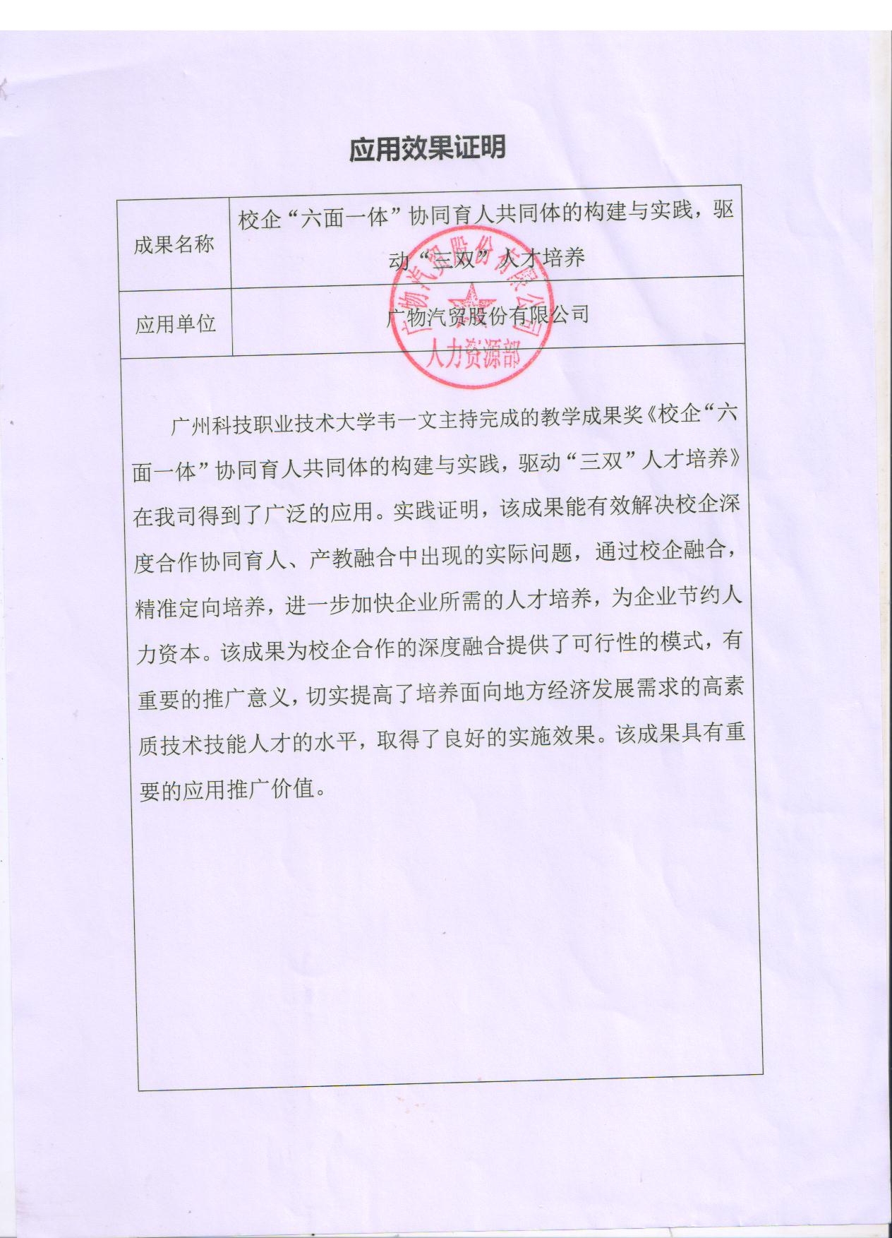 人才培养质量证明
