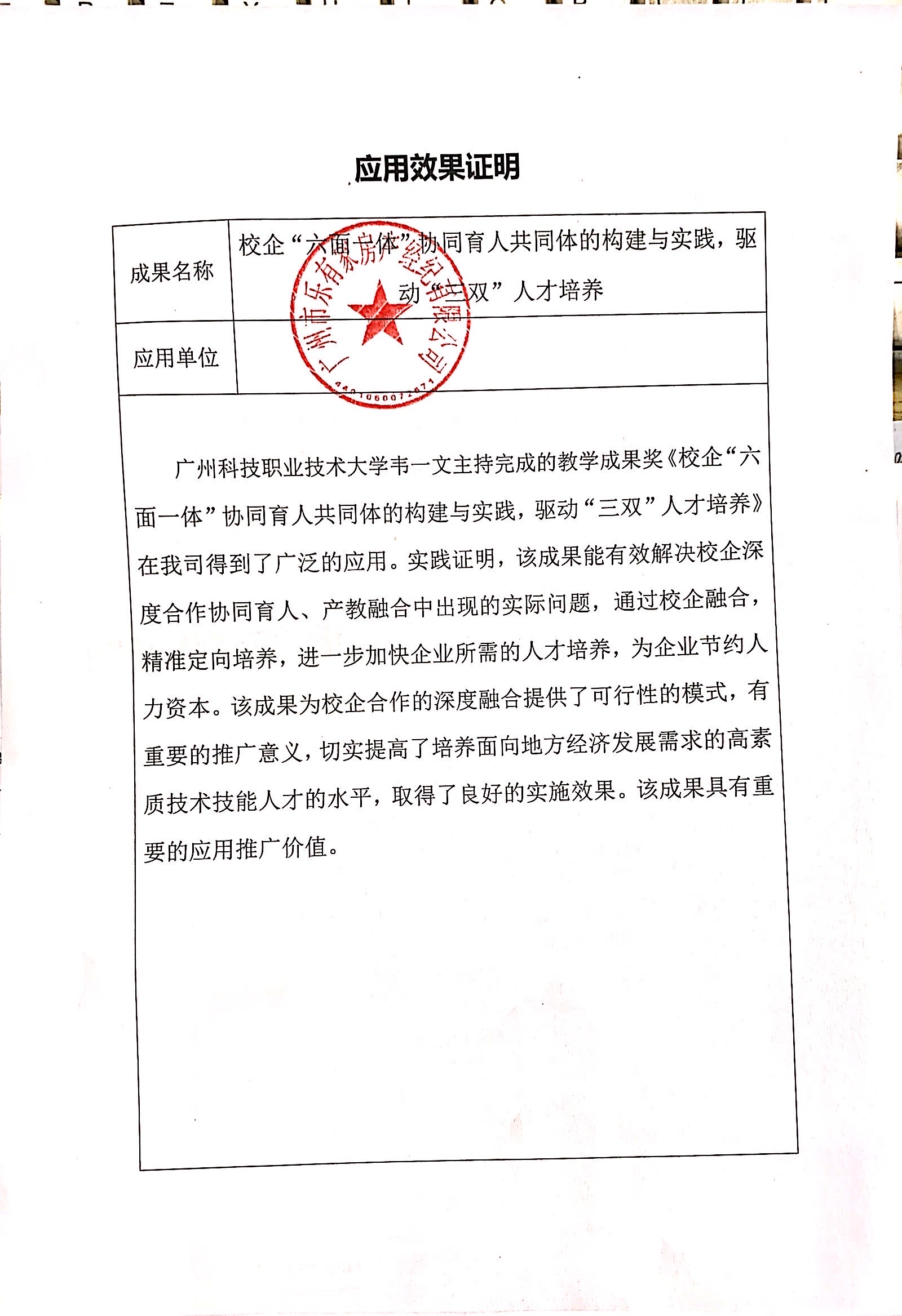 成果效果证明