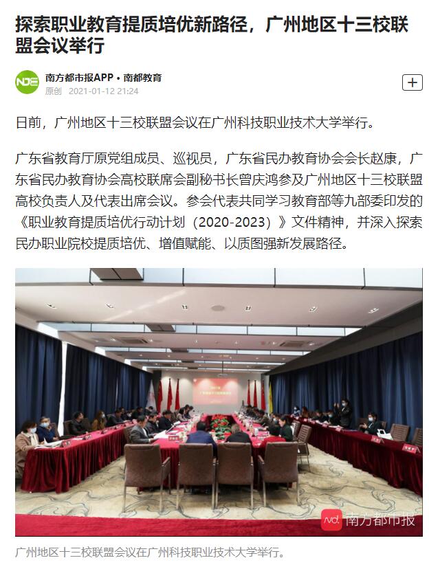 【南方都市报】探索职业教育提质培优新路径,广州地区十三校联盟会议举行