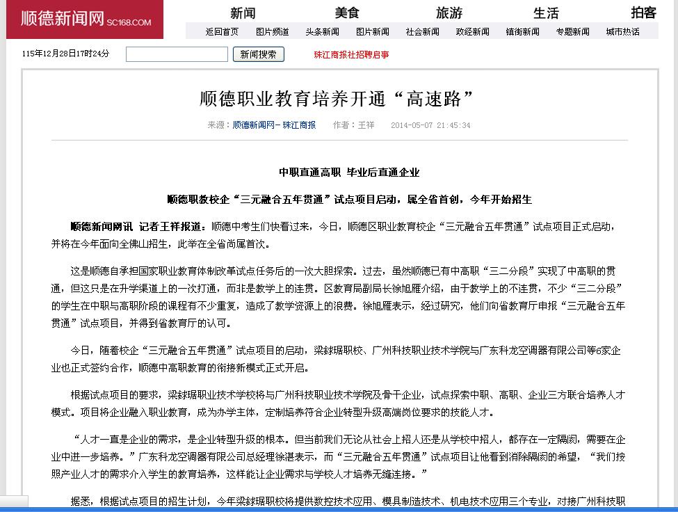 【顺德新闻网】顺德职业教育培养开通“高速路”