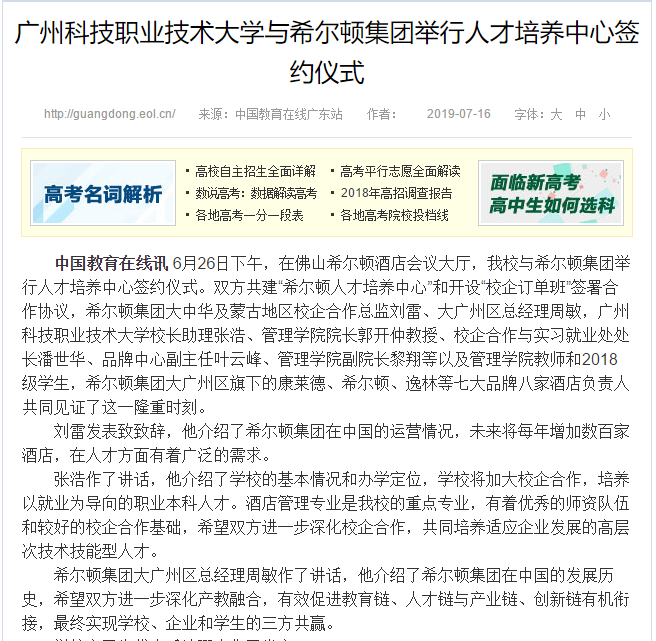 【中国教育在线广东站】华亿在线与希尔顿集团举行人才培养中心签约仪式