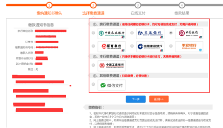 • 选择好缴费通道,点击下一步进入下一个缴费页面(以微信支付为例,下同):