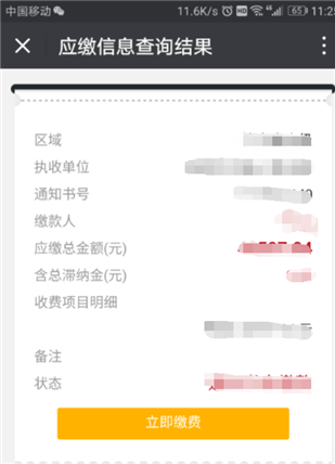 • 手机扫描二维码,出现缴费信息,再缴费前应当再次确认,如下:
